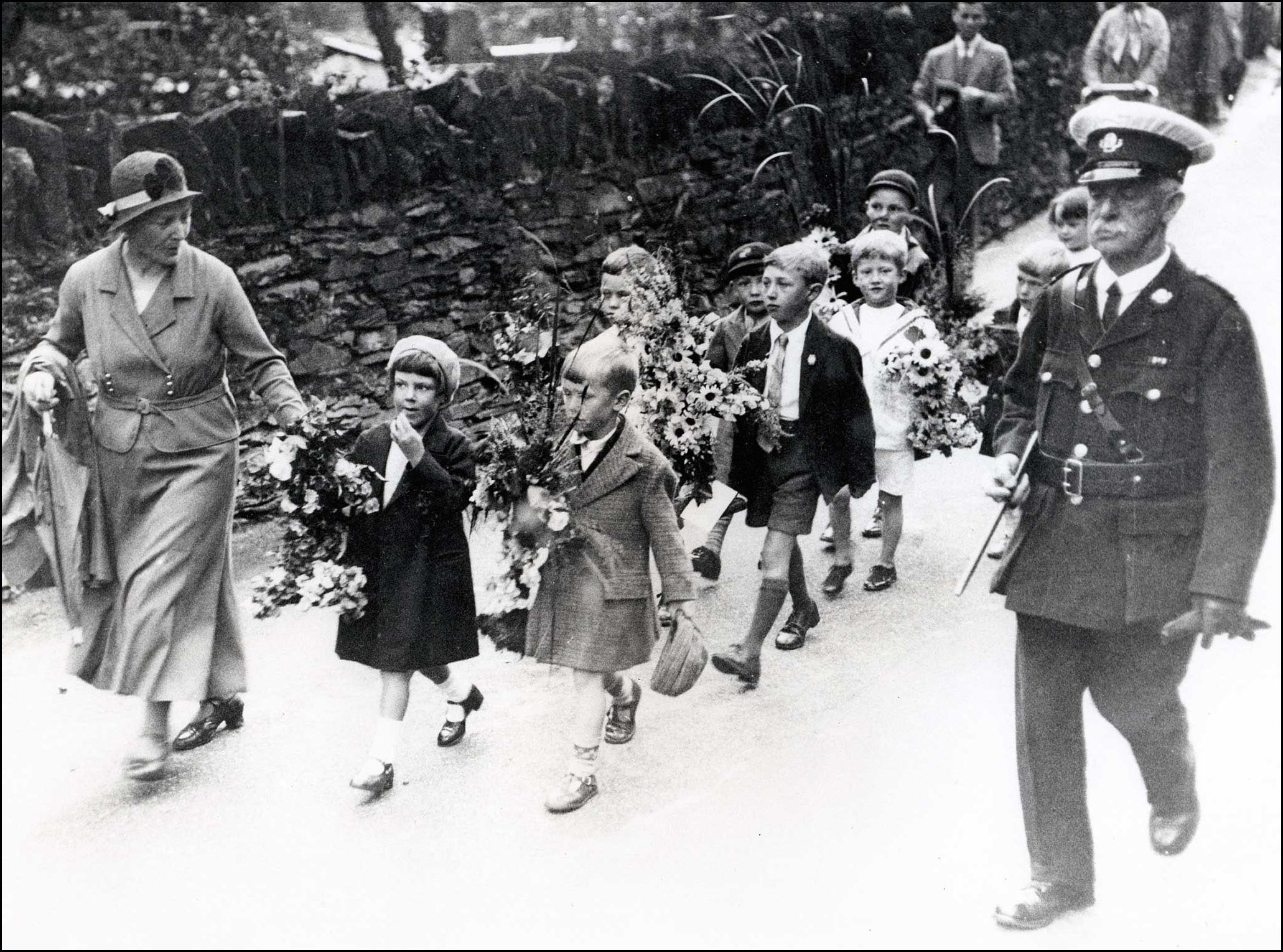 About 1929. The indomitable Miss Routledge shepherding her flock, "Chitty" Tabour in control.