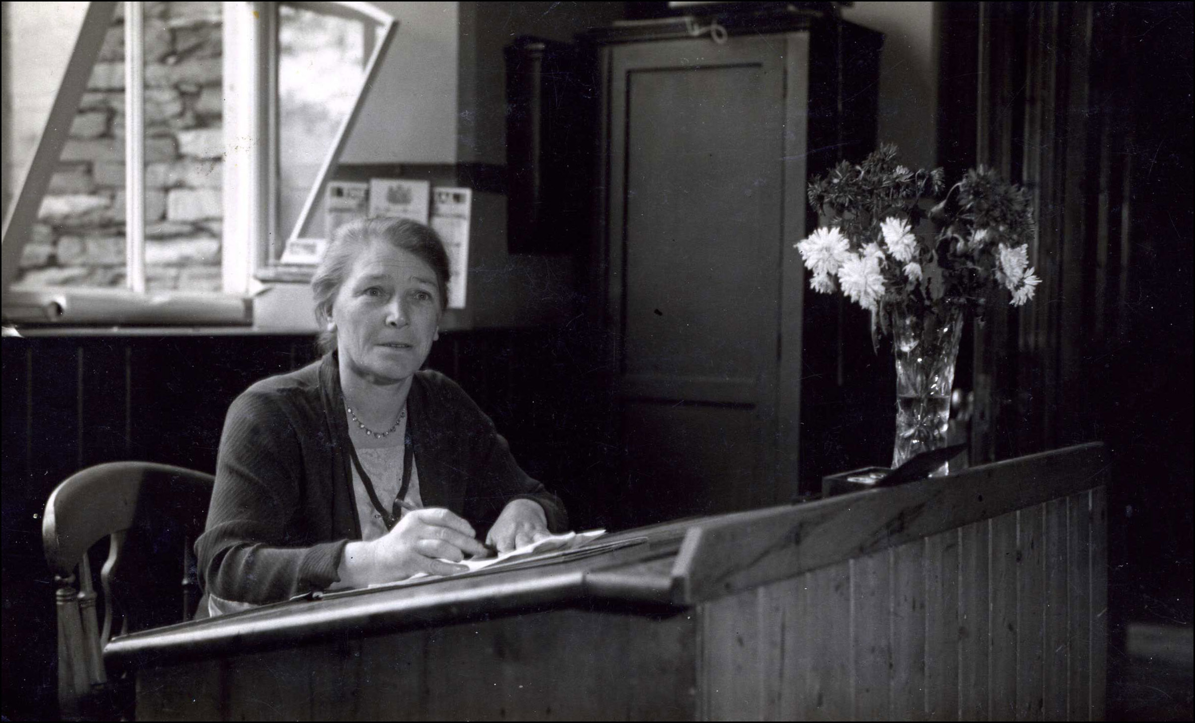 Miss Routledge, Head of Infants 1906-1935, died 1950 The well loved, bespeckled headmistriss of othe infants school was synonomous with the Rushbearing for many years. The font cover in church is in her memory. This picture was taken on her retirment 1935