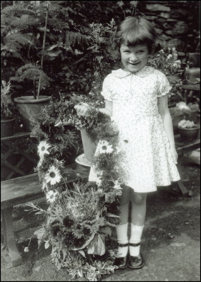 Brenda Bell with her rushbearing in the 1930's