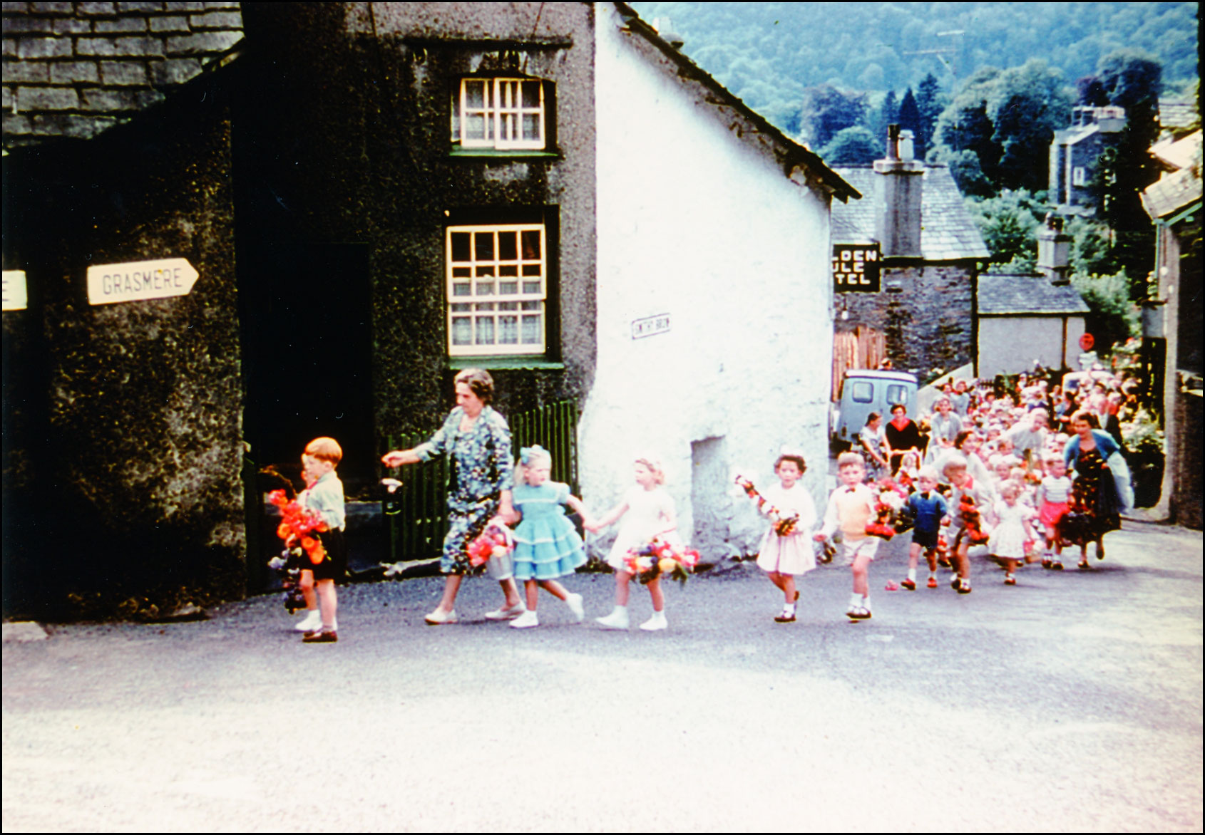 Rushbearing 1960. Marjorie Martin organising the leading children. Mary Thompson and Amy Gibbs behind.