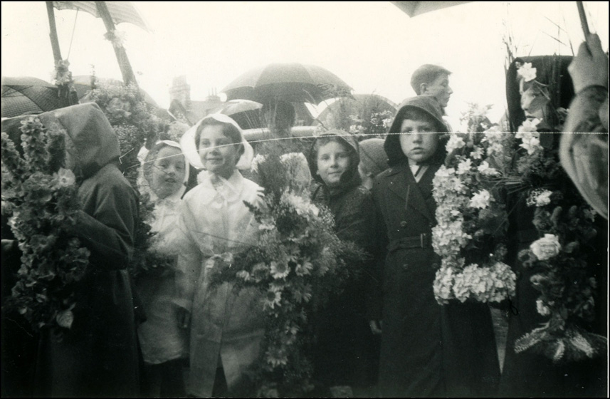 An unusally wet day Ruhbearing Day. Elaine Morton, Susan Newry, Linda Crossland and Heather Parsons.