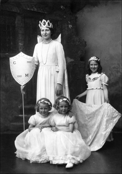 George V Silver Jubilee, 1935. Nora Woodburn Silver Jubilee Queen with attendants Peggy Dunlop, Joan & Freda Clifton.