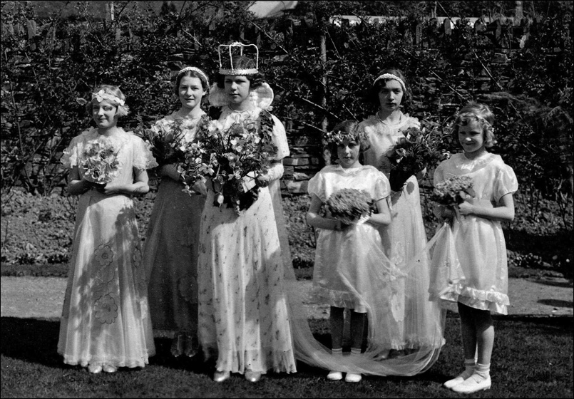 Attendants L-R Barbara Newton, Dorothy Smith, Dorothy Conelly, Peggy Langdon, Marjorie Shuttleworth.