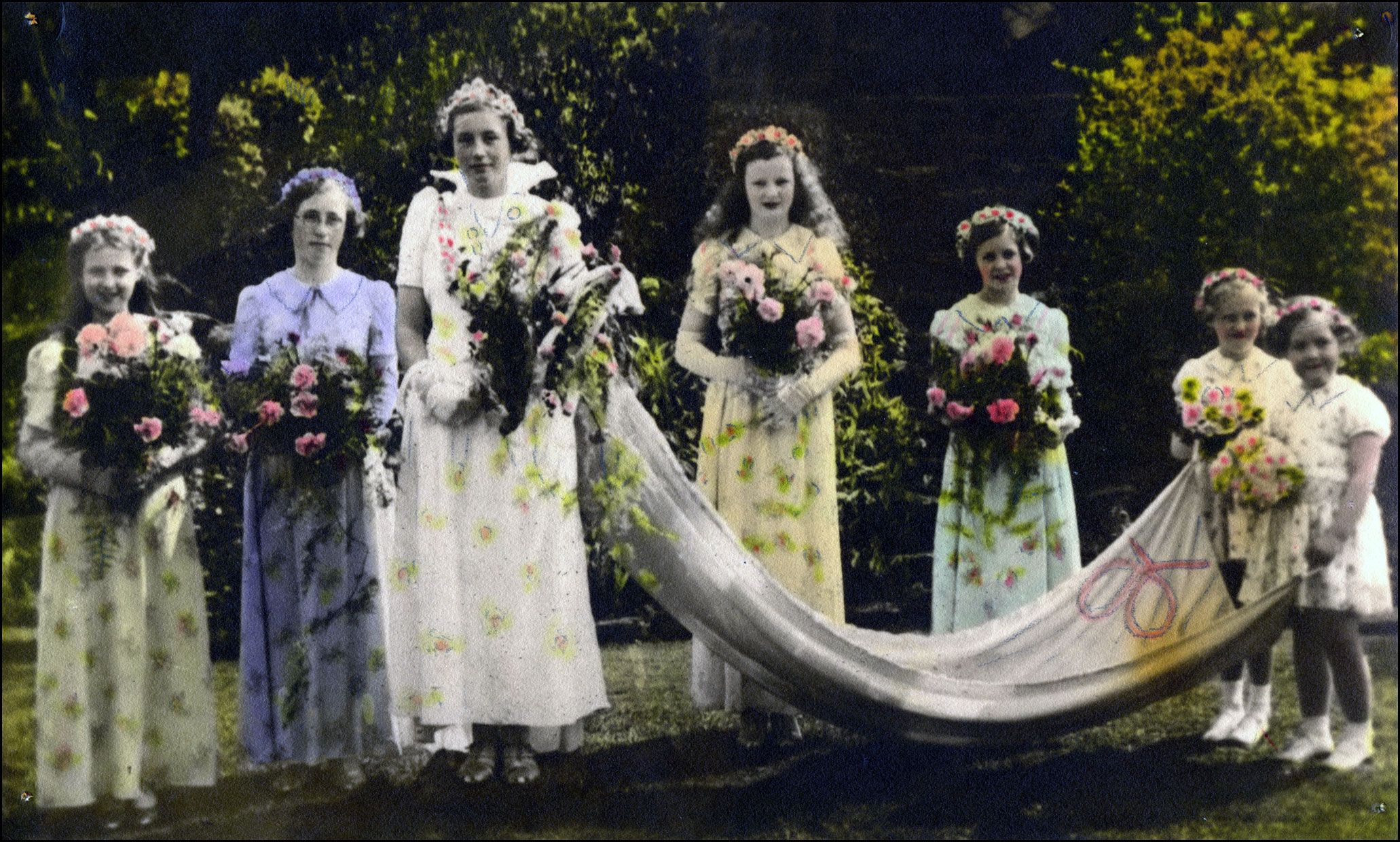 Attendants: Peggy Dunlop, Maureen Lupton, Hilda Dixon, Joyce Nevinson & Shelia Loughwin.