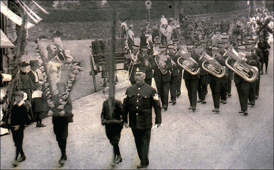 This is the Monday Procession when the children collected their bearings after school and followed the band anti-clockwise round the town for tea and games at Greenbank.