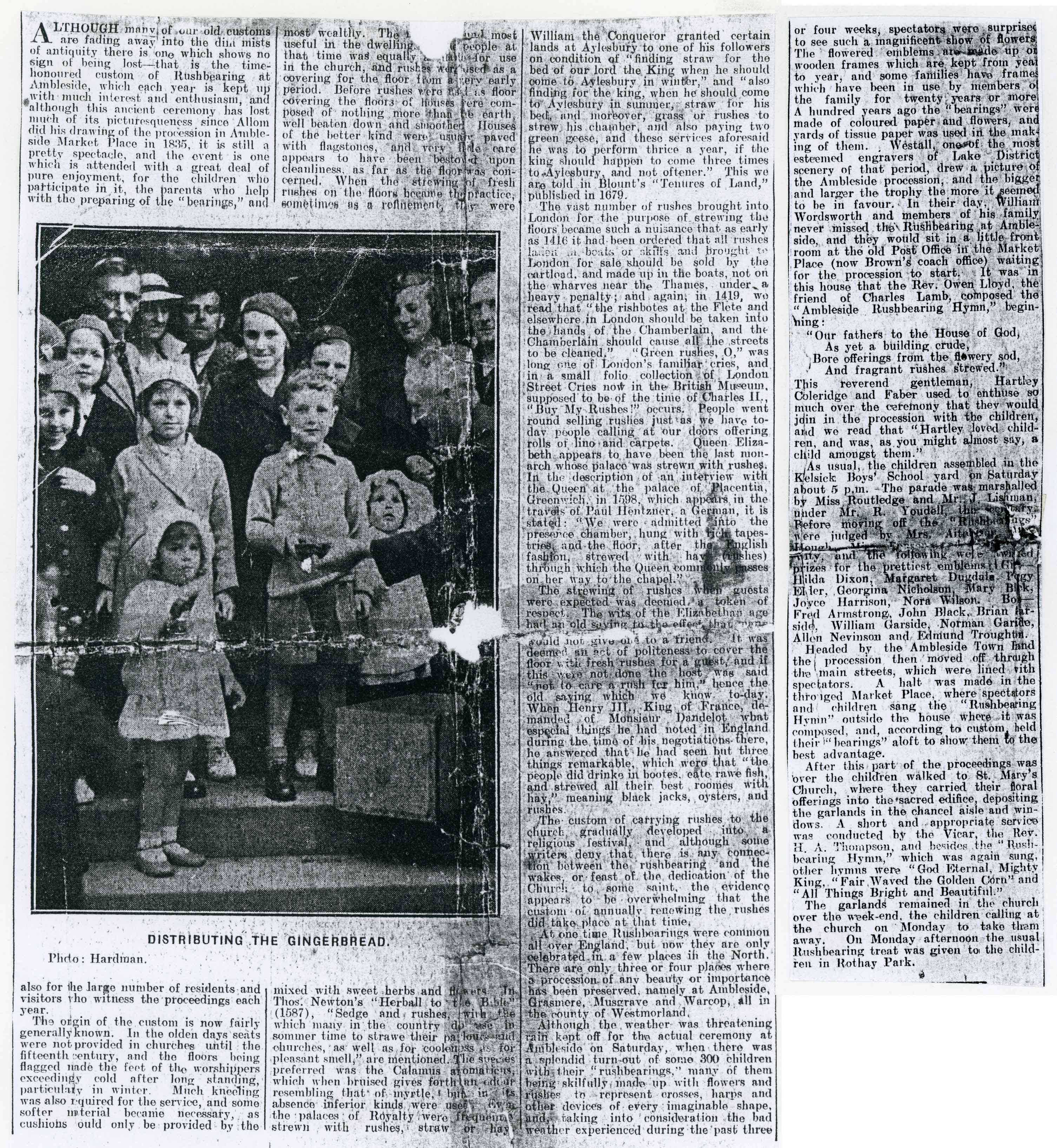 From the Lakes Herald 1936, Donated by Betty Sewell. Receiving Gingerbread. Edith Tysonm John Tysonm Teddy Burroes, Jean Dixon, Jim Dixson, Margaret Dugdale, Hilda Dixon, Iris Clarke, Disck Crossland, Cliff Lupton, Betty Sewell, Joe Youdell and Margaret Dixon.