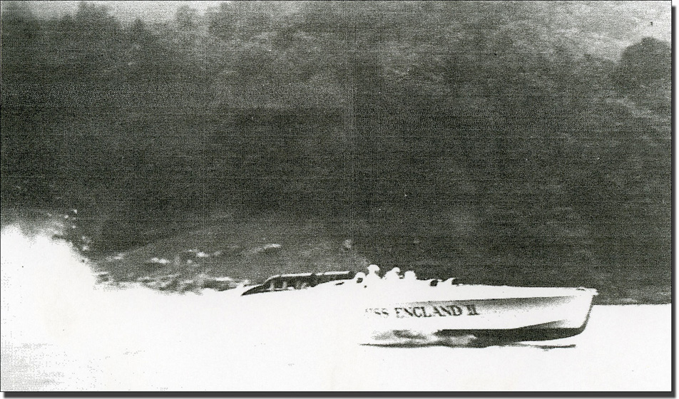 Miss Emgland II Sir Henry Seagrave was within seconds of disaster when Atkinson and Pollitt photographed Mis Emgland II travelling at a speed of 119 m.p.h. on Friday 13 June 1930. Sir Henry and mechanic Vic Halliwell died, but mechanic Michael Willcocks survived, when the boat flipped over."I remember being taken to see Seagrave from the steamer pier, I would have been about eight. I think it was his fatal attempt." Joan Newby