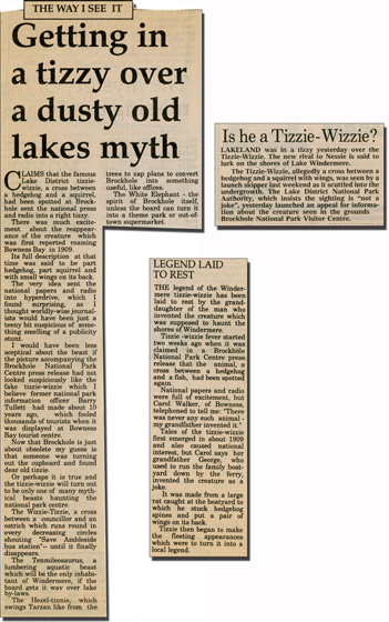 Newspaper cuttings about The Lakeland Tizzie-Wizzie