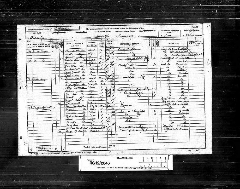 | Residence | 1891 (age 20-21) | Biddulph, Staffordshire, England4 |