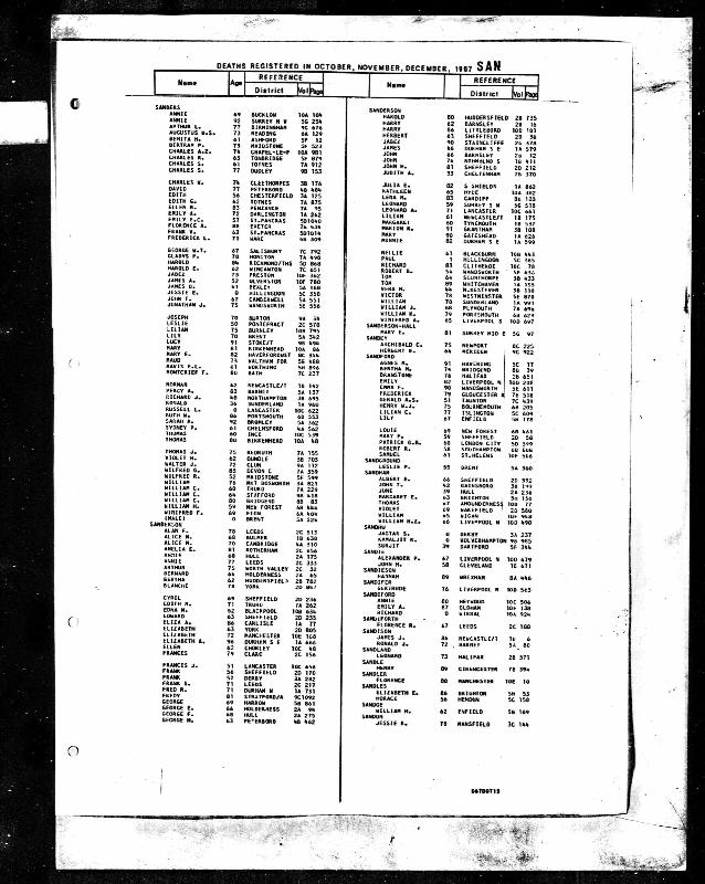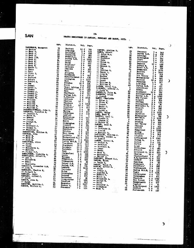 | 17 | Ancestry.com, "England & Wales, Death Index, 1916-2007" (Name: Ancestry.com Operations Inc; Location: Provo, UT, USA; Date: 2007;). Text From Source: Record for Jessie R Sandon |