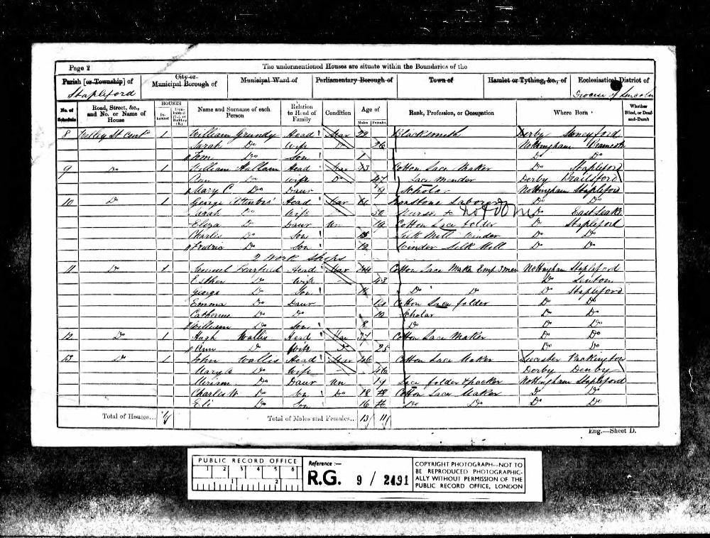 | Occupation | 1861 (age 10-11) | Grocer; 2 Church Street Stapleford |