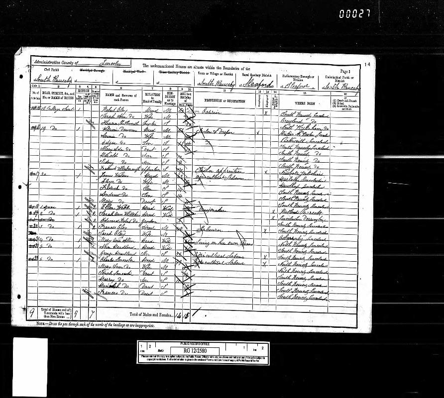 | 73 | Ancestry.com, "1891 England Census" (Name: Ancestry.com Operations Inc; Location: Provo, UT, USA; Date: 2005;). Class: RG12; Piece: 2580; Folio: 14; Page: 3; GSU roll: 6097690. |