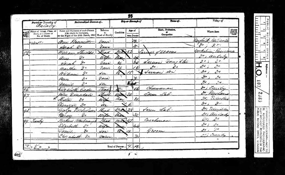 | Residence | 1851 (age 18-19) | Anlaby, Yorkshire, England1,21 |