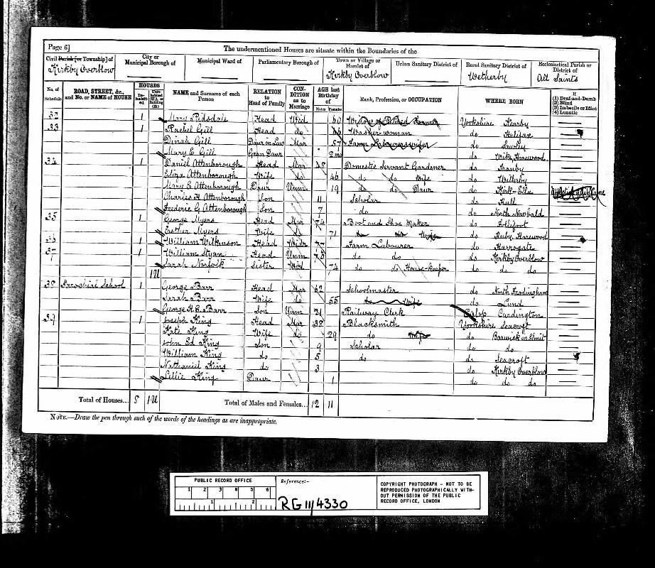 | Residence | 1881 (age 13-14) | Kirkby Overblow, Yorkshire, England1 |