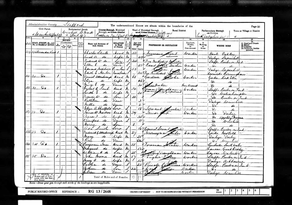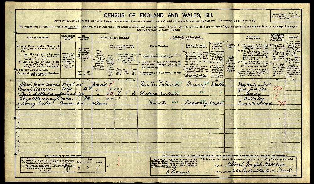 | Residence | 2 Apr 1911 (age 78) | Burton on Trent, Staffordshire, England1,26 |