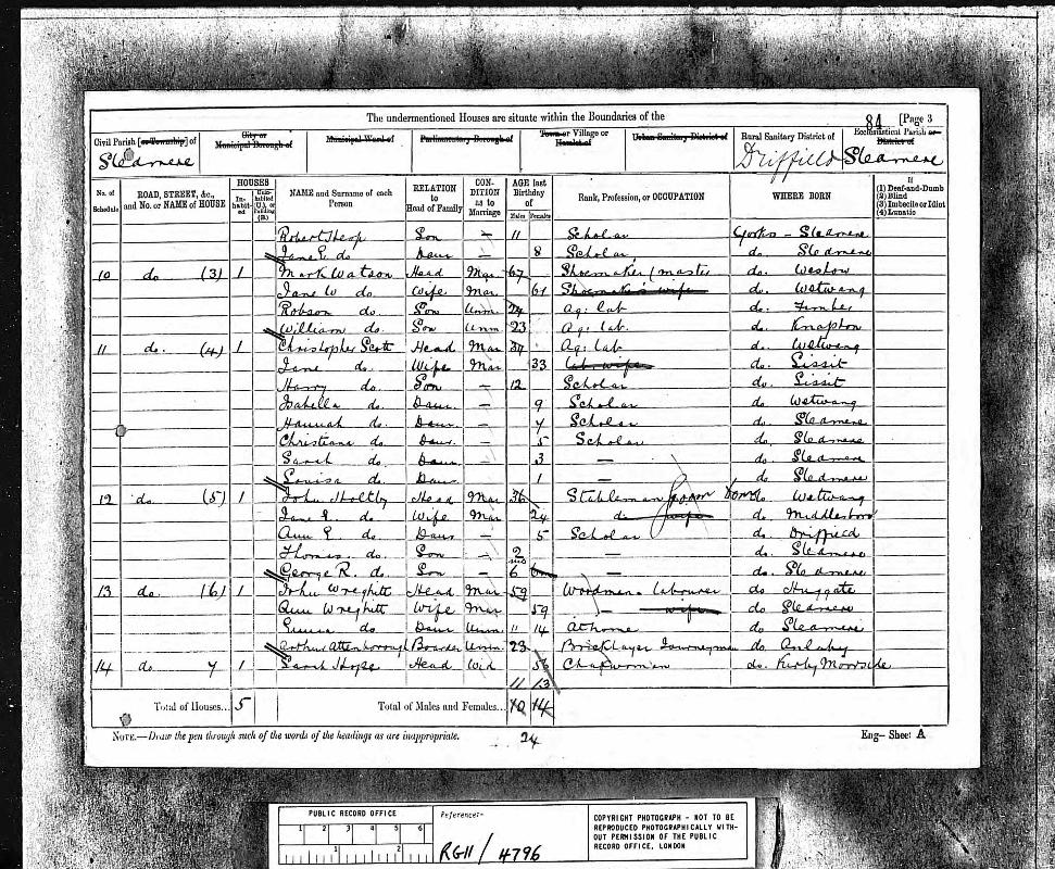 | Residence | 1871 (age 10-11) | Kirk Ella, Yorkshire, England1 |