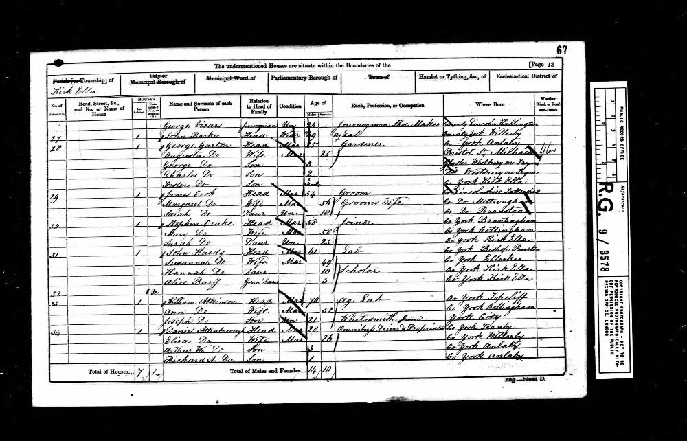 | Residence | 1881 (age 48-49) | Kirkby Overblow, Yorkshire, England1,23 |