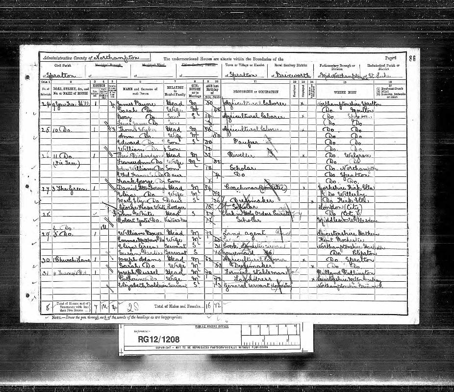 | Residence | 1891 (age 28-29) | Spratton, Northamptonshire, England1 |
