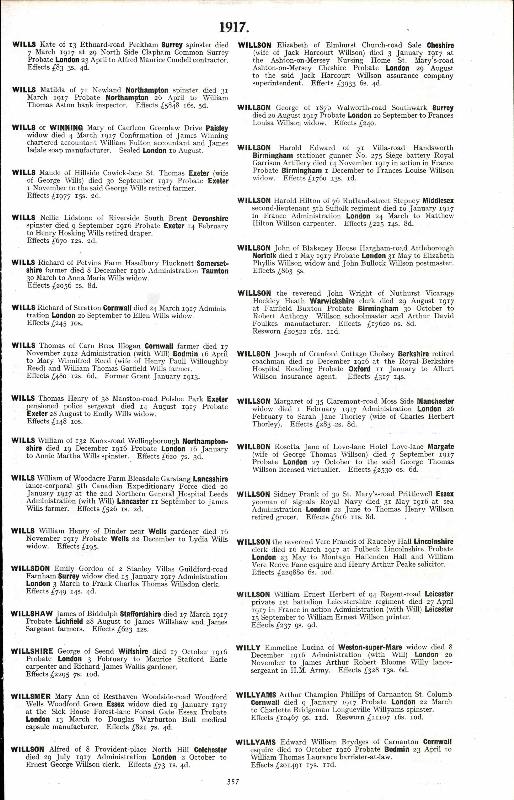 | 4 | Ancestry.com, "England & Wales, National Probate Calendar (Index of Wills and Administrations), 1858-1966" (Name: Ancestry.com Operations Inc; Location: Provo, UT, USA; Date: 2010;). |