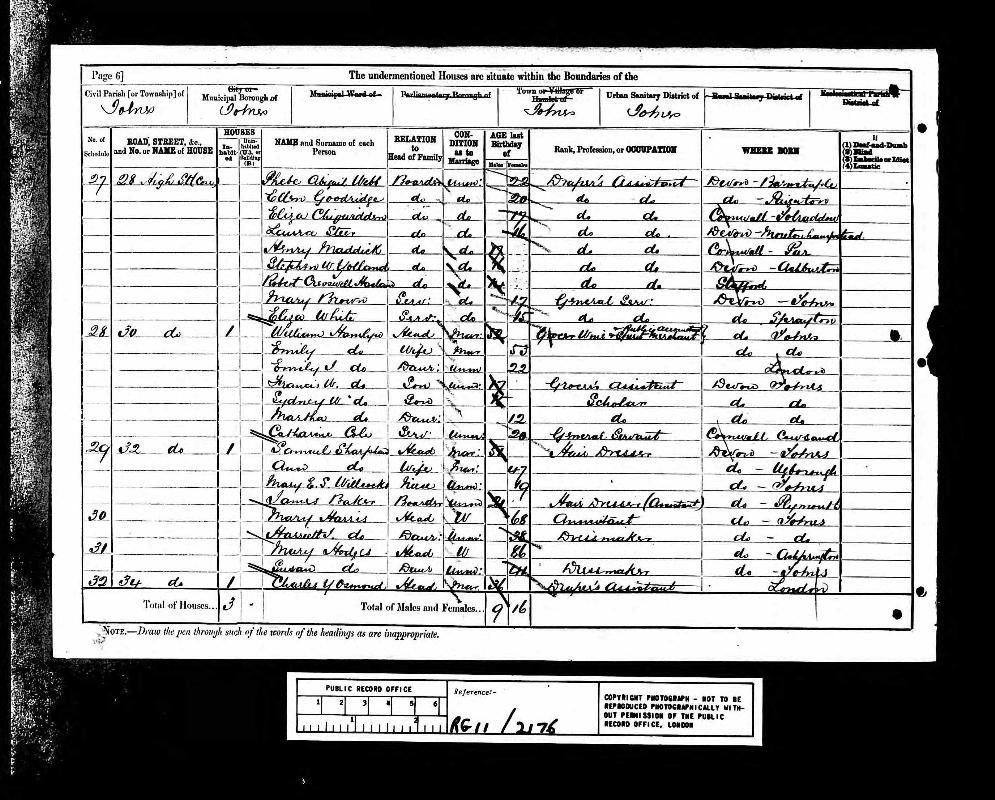 | Residence | 1881 (age 56-57) | Plymouth St Andrew, Devon, England34 |