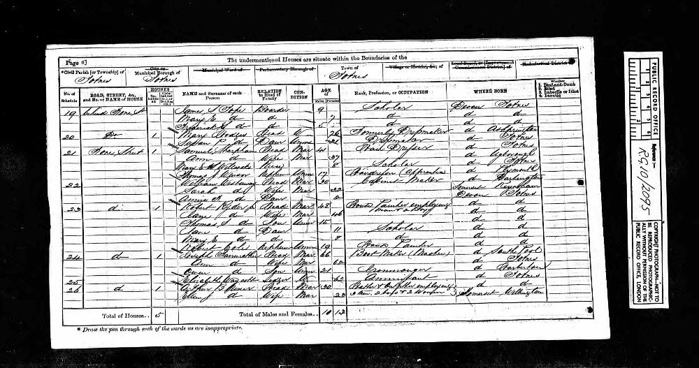 | Residence | 1881 (age 47-48) | St Giles in the Fields, London, England43 |