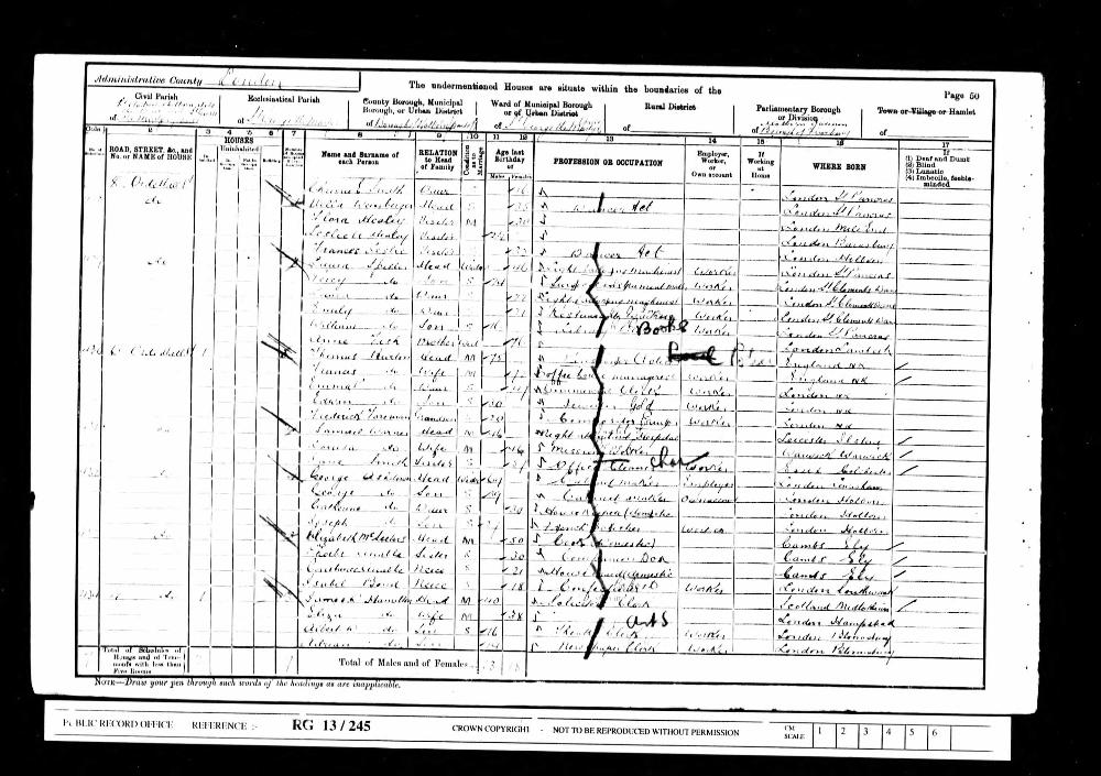 | 12 | Ancestry.com, "1901 England Census" (Name: Ancestry.com Operations Inc; Location: Provo, UT, USA; Date: 2005;). Class: RG13; Piece: 245; Folio: 60; Page: 50. |