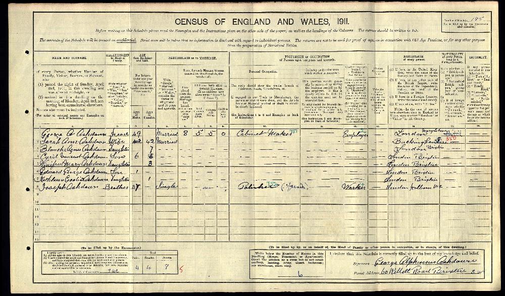 | 4 | Ancestry.com, "1911 England Census" (Name: Ancestry.com Operations, Inc.; Location: Provo, UT, USA; Date: 2011;). Class: RG14; Piece: 2091. |