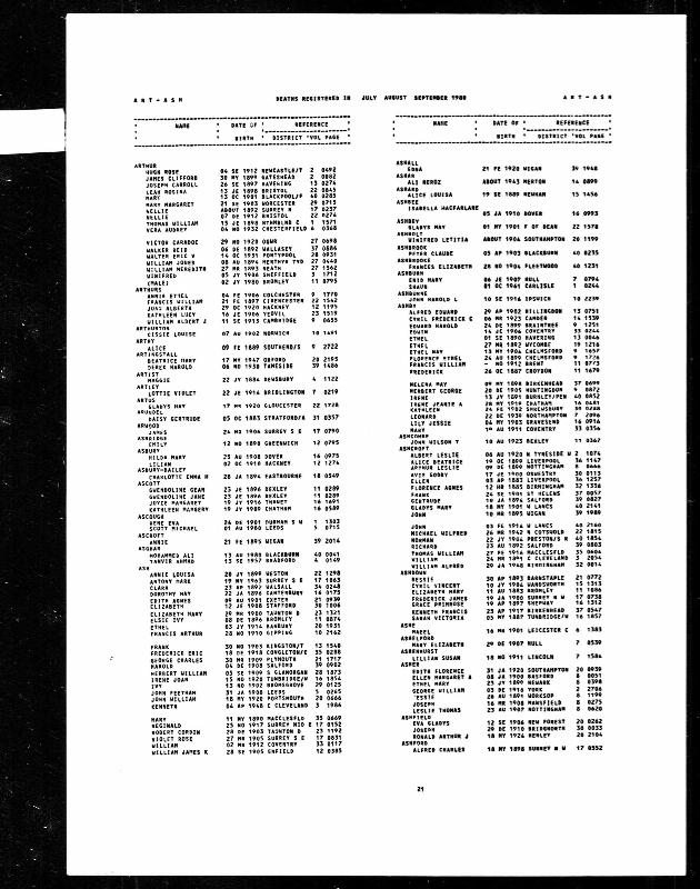 | 5 | Ancestry.com, "England & Wales, Death Index, 1916-2007" (Name: Ancestry.com Operations Inc; Location: Provo, UT, USA; Date: 2007;). |