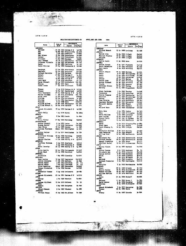 | 1 | Ancestry.com, "England & Wales, Death Index, 1916-2007" (Name: Ancestry.com Operations Inc; Location: Provo, UT, USA; Date: 2007;). |