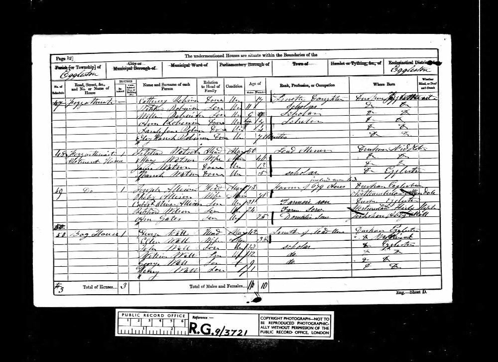 | Residence | 1861 (age 6-7) | Egglestone, Durham, England3 |