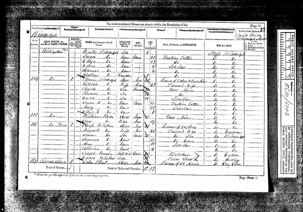 | 9 | Ancestry.com, "1871 England Census" (Name: Ancestry.com Operations Inc; Location: Provo, UT, USA; Date: 2004;). Class: RG10; Piece: 3702; Folio: 52; Page: 23; GSU roll: 842115. |